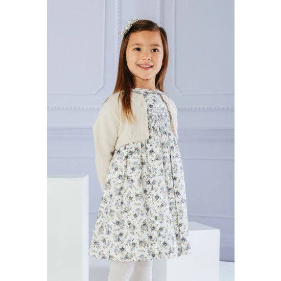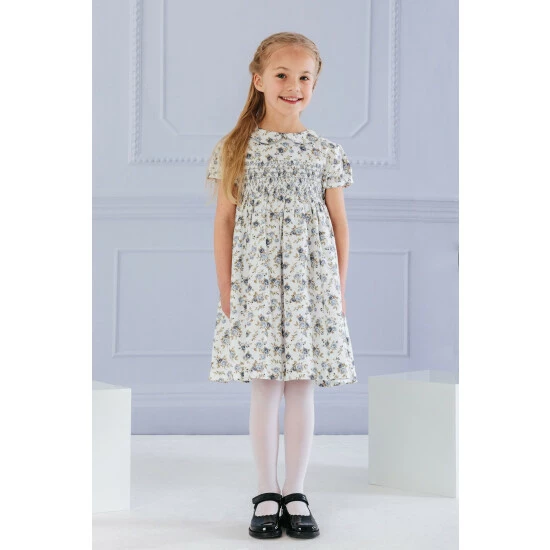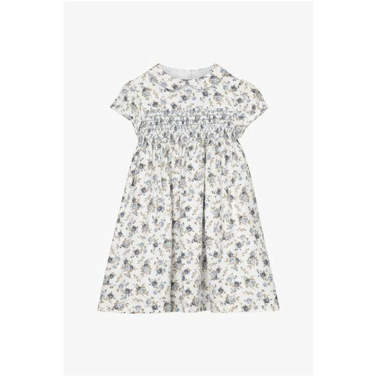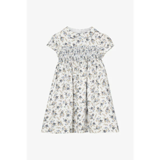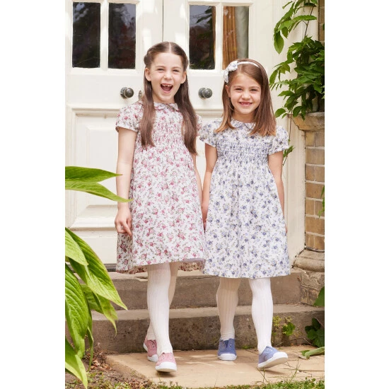 A Trotters classic, this traditional smocked dress comes in pretty floral rose print and features a matching Peter Pan collar with a tonal picot edge trim. Made from 100% organic cotton, it comes fully lined and features a matching self-tie bow at the back for the perfect finish.