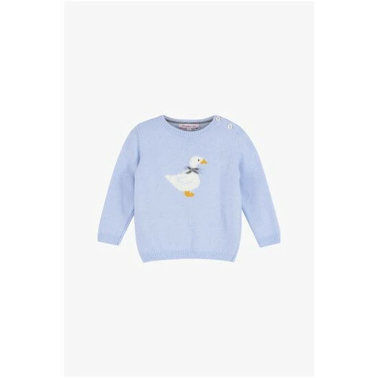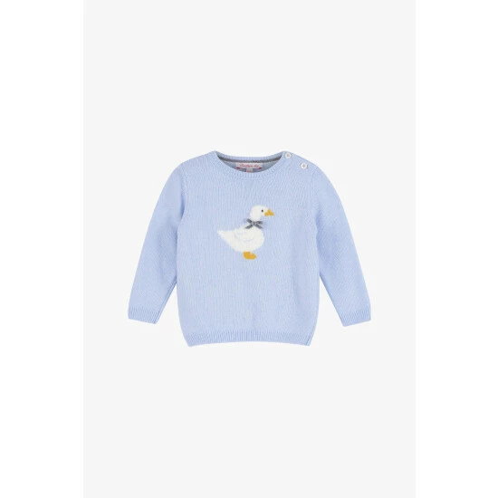 Our signature Jemima Jumper is made in a soft and warm cashmere mix and features our Jemima intarsia design on the front complete with a complementary bow detailing. Layer over a smart white body with a pair of our sweet bloomers for a great baby girl’s outfit.