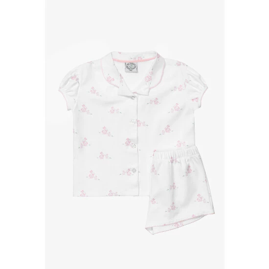 These comfortable pyjamas are made from extra soft organic cotton jersey and feature a unique all-over pink bunny design that was created by Trotters London’s in-house design team. Complete with a complementary pink picot trim around the neckline, a fully elasticated waist and pretty puff sleeves, they’re sure to become a new bedtime favourite.