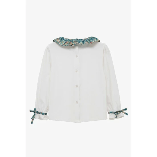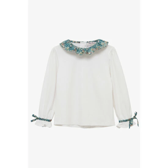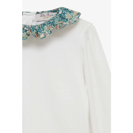 Our bestselling jersey blouse comes with a fun twist this season. Set against a classic white, it features a beautiful willow collar made in liberty’s strawberry thief print fabric, originally designed by William Morris in 1883. Complete with a full button-down back, it also showcases elasticated ties at the cuff to keep those sleeves in place. Perfect for pairing with trousers and skirts for an easy day-to-day outfit.