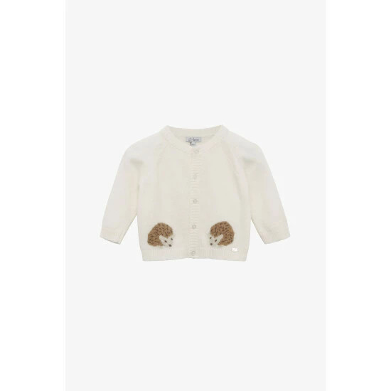 Introducing Prickles, Trotters beloved hedgehog, his adorable face features on this wonderfully soft and warm cashmere mix cardigan with pearlised buttons down the centre.