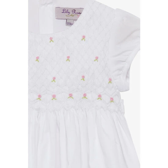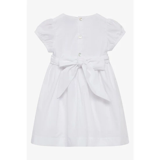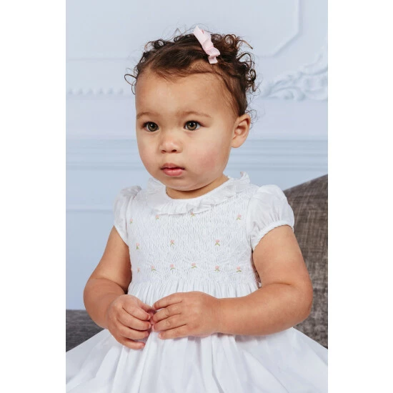 Every little flower girl’s dream, our gorgeous rose dresses have an intricate, hand-smocked upper with miniature rosebud detail; the perfect outfit for all those summer parties and weddings. Integrated petticoat, pearlised button-up back and matching ribbon tie are beautiful finishing touches to these stand out pieces. Please note: due to their hand-smocked upper Trotters London recommends purchasing up one size.