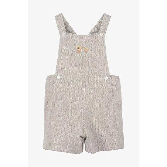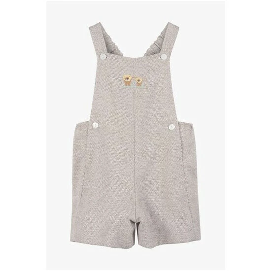 These bib shorts make a quick and easy outfit for baby boys. Made in a soft cotton mix and available in a chic and versatile oatmeal herringbone, they feature our adorable Augustus lion embroidered across the front bib. Now available up to a size 3/4Y online only, they’re perfect for brothers who love to match! Additional elastic to the straps and waist make these comfortable to wear while the pearlised button fastenings add a smart finishing touch.