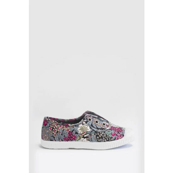 As featured in the Daily Mail, Telegraph and Hello Magazine, the stylish retro canvas shoes by Hampton Canvas are handmade in Europe and worn all over the world! Made in Liberty’s Ciara print fabric, a dense botanical design in hues of pink, red and green, they are elasticated for ease and comfort. Made in compliance with the Green Trade World certification, they have a 100% organic cotton upper which is bonded to a hand-finished, 100% natural rubber sole.