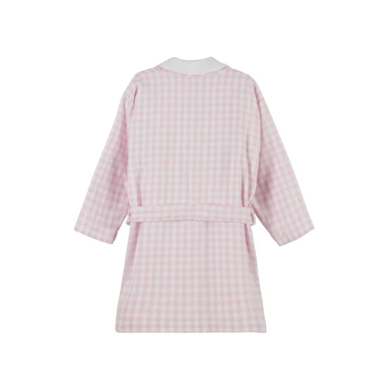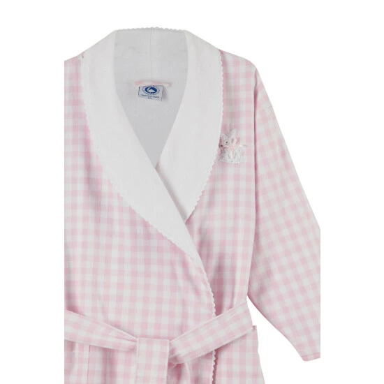 This soft, brushed cotton bathrobe comes in a classic pink gingham colourway. It has a cosy towelling lining, perfect for snuggling up in on those cooler mornings and evenings. It also features two patch pockets and a bouclé appliqué bunny on the front chest, complete with satin bow detailing for a touch of the wow factor.