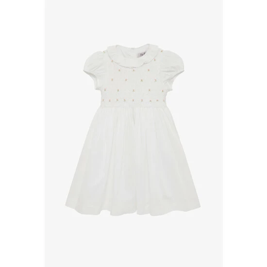 Every flower girl’s dream, Trotters London’s gorgeous rose dresses have an intricate, hand-smocked upper with miniature rosebud detail; the perfect outfit for all those summer parties and weddings. Delicate willow collar, integrated petticoat, pearlised button-up back and matching ribbon tie are beautiful finishing touches to these stand out pieces. Please note: due to their hand-smocked upper Trotters London recommend purchasing up one size.